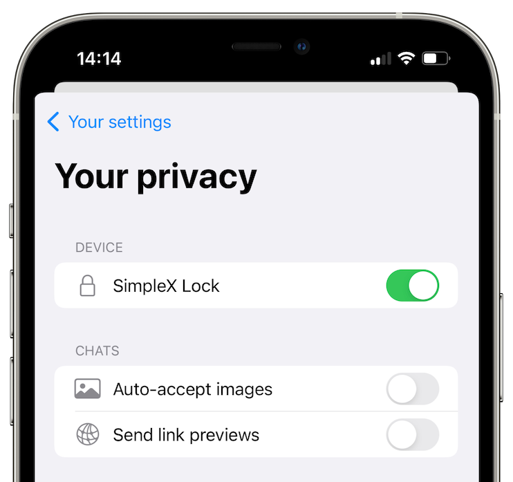 To protect your chats you can enable SimpleX Lock. Every time you open the chat after it was in the background for 30 second, you will need to pass biometric or pin code authentication to use the app (provided it is enabled for your device).