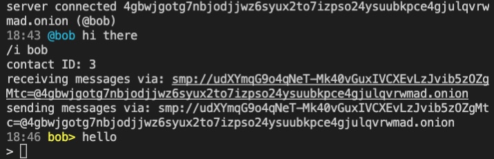 - terminal app: access to messaging servers via SOCKS5 proxy (e.g., Tor).