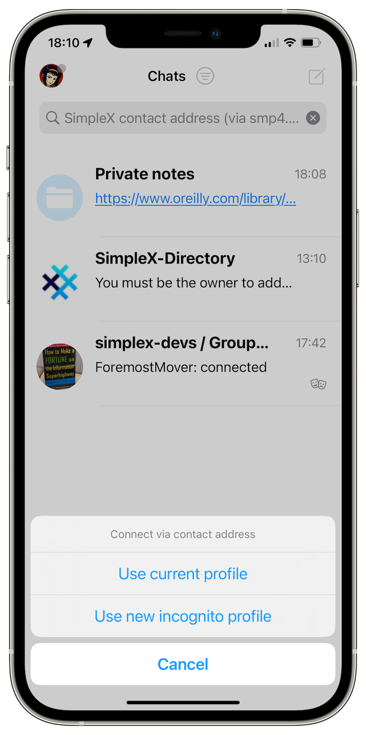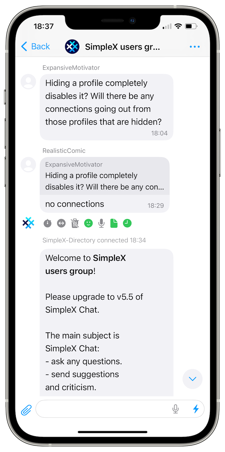 SimpleX Chat: free infrastructure from Linode, v5.5 released with private notes, group history and a simpler UX to connect.