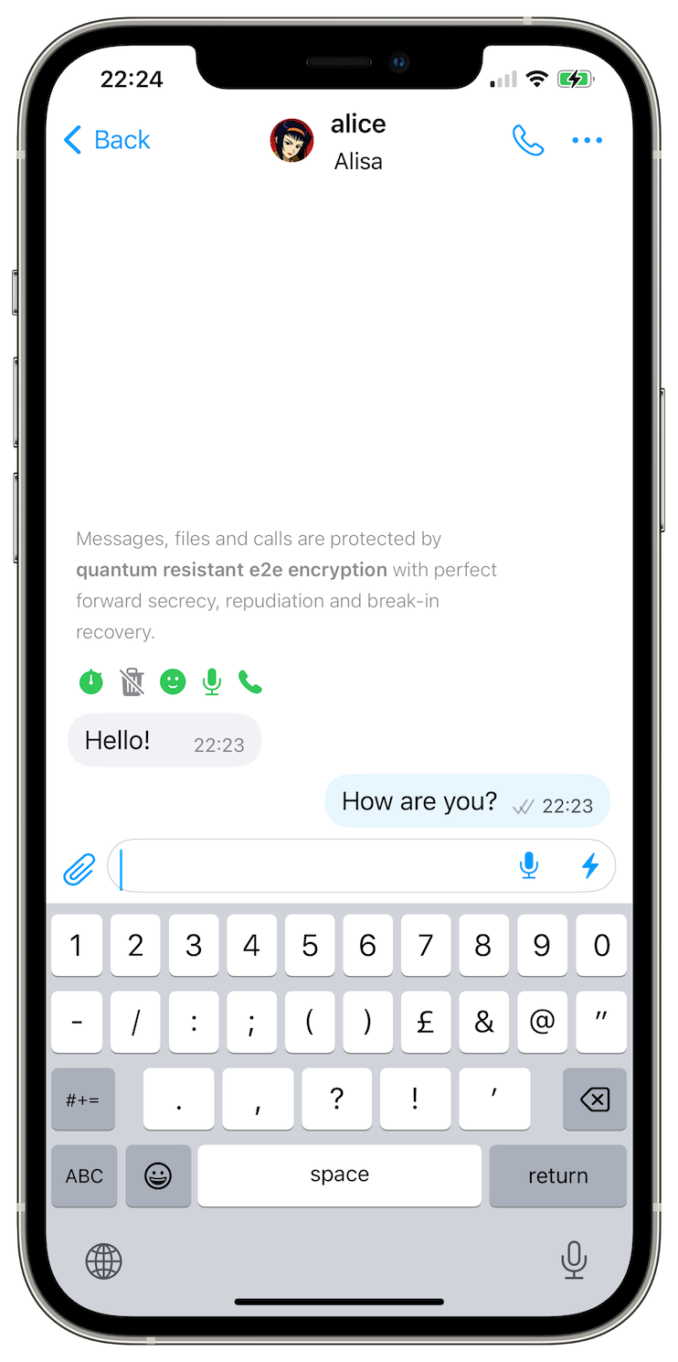 - unlike other messengers that adopted or plan to adopt ML-KEM, we used Streamlined NTRU Prime algorithm (specifically, strnup761) that has no problems of ML-KEM, no known patent claims, and seems less likely to be compromised than other algorithms - it is exactly the same algorithm that is used in SSH. You can review the comparison of the risks of various post-quantum algorithms.